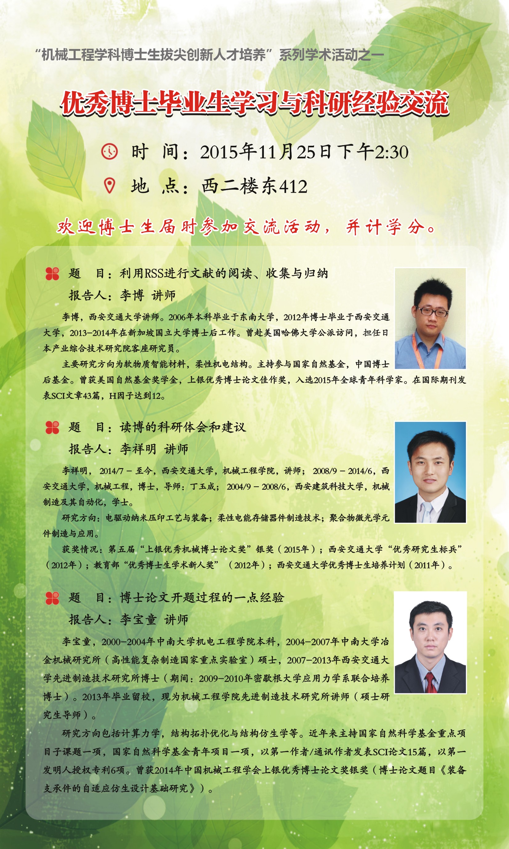 欢迎博士生届时参加交流活动,并计学分。
