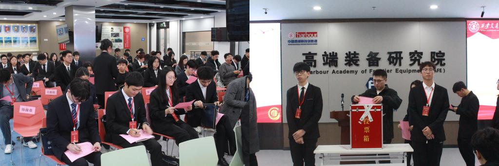 校研究生会主席团成员候选人熊峰致辞,他首先肯定了校院两级研会过去一年在思想引领、服务同学等工作中取得的成绩,特别是校研会当选全国学联第二十八届主席团团体单位,机械学院研会组织建设与服务质量突出。同时对机械研会的下一步工作提出了建议与期待。能源与动力工程学院研究生会主席团成员邓淼俐交流发言,她表示,能动学院与机械学院同源而出,相向而行,在学科建设、学院建设与学生工作等方面密切合作,培养了浓厚的兄弟情谊。在新时代的发展浪潮中,两院将继续携手共进,共同推进学校工科建设发展,为祖国的发展建设添砖加瓦。