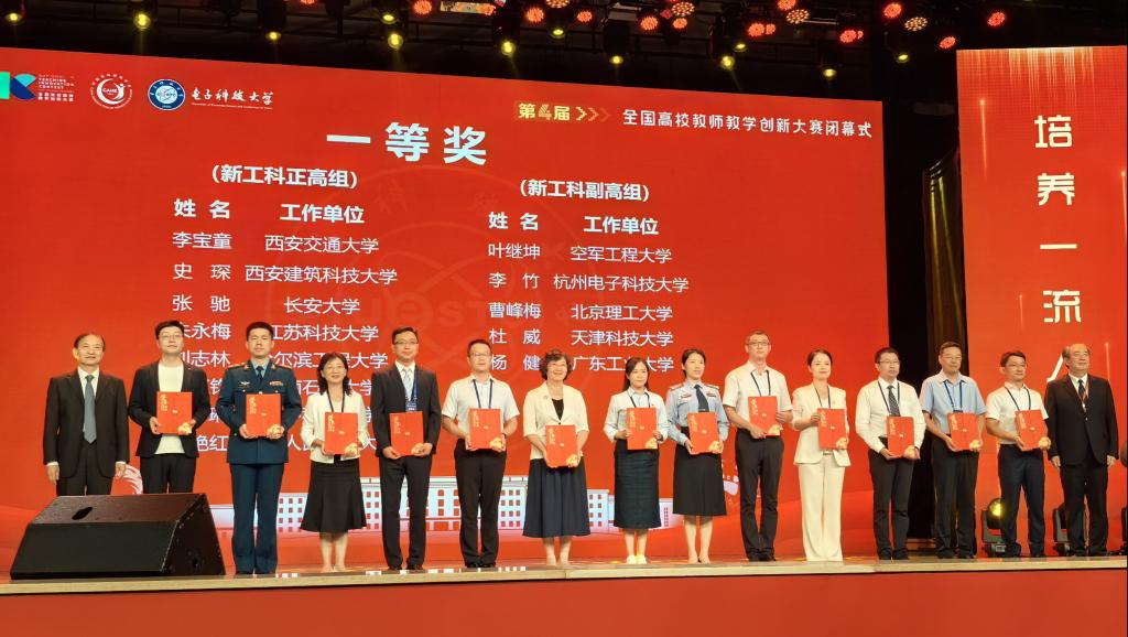 由教育部高等教育司指导、中国高等教育学会主办的第四届全国高校教师教学创新大赛总决赛于7月27-31日在电子科技大学举办。由我院李宝童教授领衔主讲,徐亮、桂亮、朱爱斌等老师组成的《机械设计基础》教学团队,以出色的教学设计和赛场表现,斩获本届大赛新工科赛道正高组一等奖。