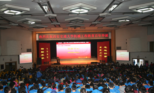 2013年4月6日,西安交大逾千名机械工程学科的校友和师生代表隆重纪念机械工程教育百年华诞。上午8时许,从海内外返回母校的800余名校友陆续步入礼堂,身着统一的蓝色和枚红色院衫显得格外精神。纪念大会在慷慨激昂的《为世界之光》的校歌声中隆重开幕。校党委书记王建华、校长郑南宁、中国工程院院士谢友柏、李鹤林、卢秉恒及陕西省教育厅厅长李兴旺出席大会。郑南宁校长致欢迎词,新疆大学koko体育·(中国)官网院长孙文磊代表兄弟高校致辞,koko体育·(中国)官网院长卢秉恒院士汇报学科建设与发展情况,张晓鲁、宫惠明、郭宝安、王华明四位校友代表先后发言,原西安交大koko体育·(中国)官网院长朱均代表教授发言。会上,还举行了共建与捐赠签约仪式,西安交大与四家企业代表签署合作共建及设备捐赠协议,并向多位在百年华诞之际慷慨解囊、支持学校发展的企业和个人代表颁发捐赠证书。大会由koko体育·(中国)官网党委书记梅雪松主持。