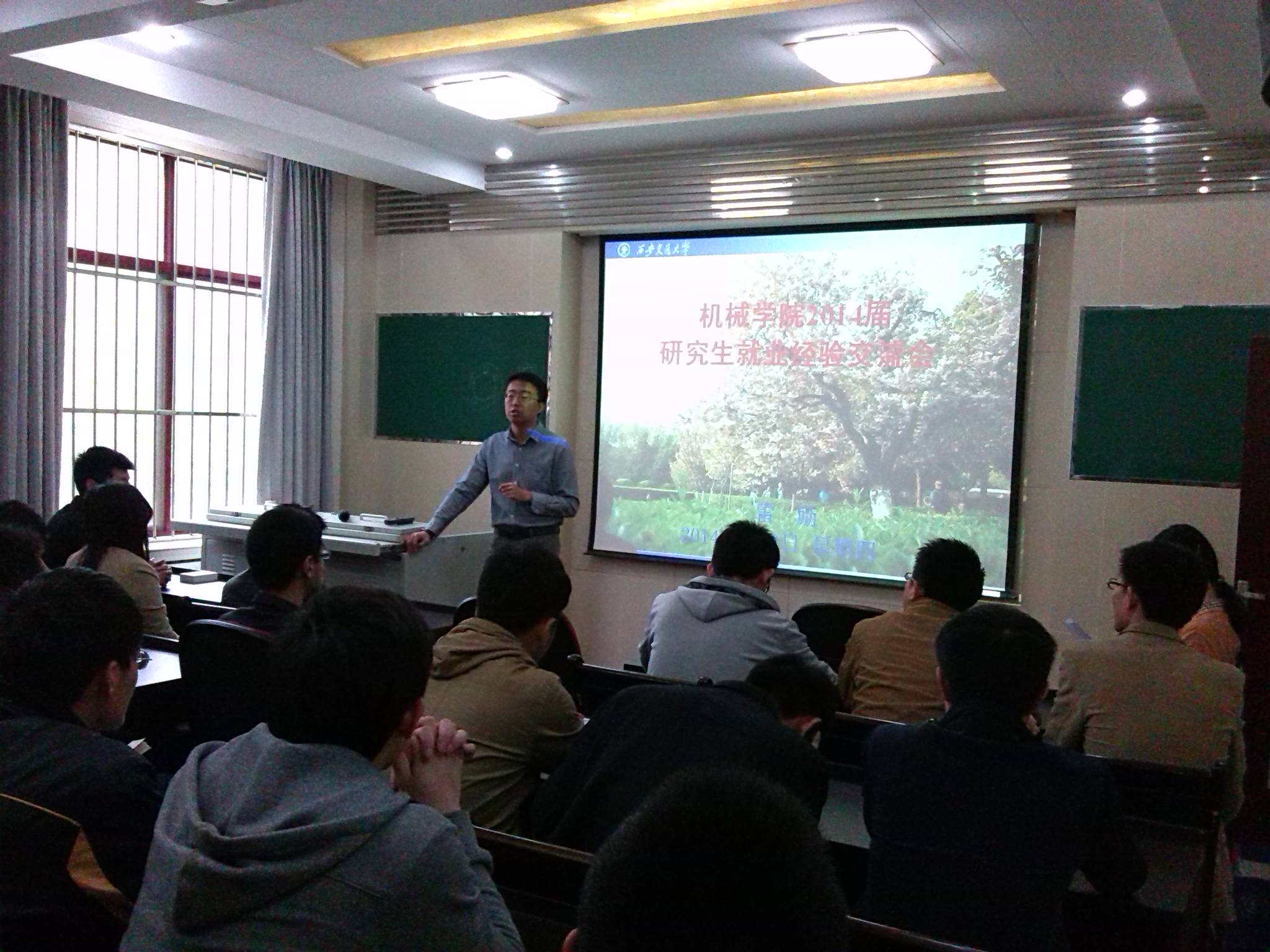 在交流会上,来自于不同学制、不同专业、不同性质就业单位的12位毕业研究生热情地分享了各自在求学、求职过程中的成长经历,给即将面临就业的师弟师妹们提供了宝贵经验和建议。本次邀请的毕业生签约单位分别是:中国电子科技集团公司第十四研究所、深圳市大疆创新科技有限公司、中航第九研究院第七七一研究所、华为技术有限公司、中国科学院长春光学精密机械与物理研究所、中国电子科技集团公司第二十九研究所、中国石油天然气股份有限公司新疆油田分公司、一汽-大众汽车有限公司、东风汽车集团股份有限公司技术中心等。