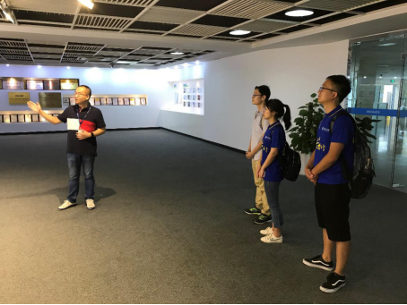 在公司食堂吃过午饭小憩以后,下午由HR的姜工负责接待我们。实践团队首先进入生产线参观,严格的超净环境控制,生产车间高效、有序,机械臂的使用都让团队人员对实际的产品生产线有了更加直接而深入的认识。