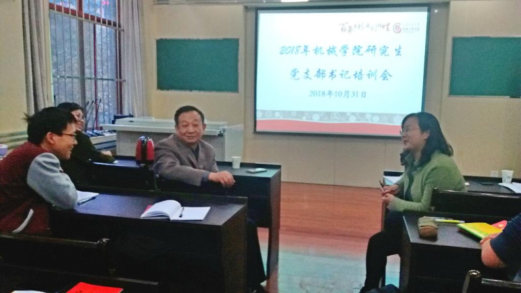 2018年10月31日下午,机械学院在第三会议室召开了硕士研究生党支部书记培训会。本次会议邀请党校聂钢教授为研究生党员干部作报告,辅导员王芬老师及全体硕士研究生的党支部书记参加了本次会议。会议由学院党委副书记张敏老师主持。