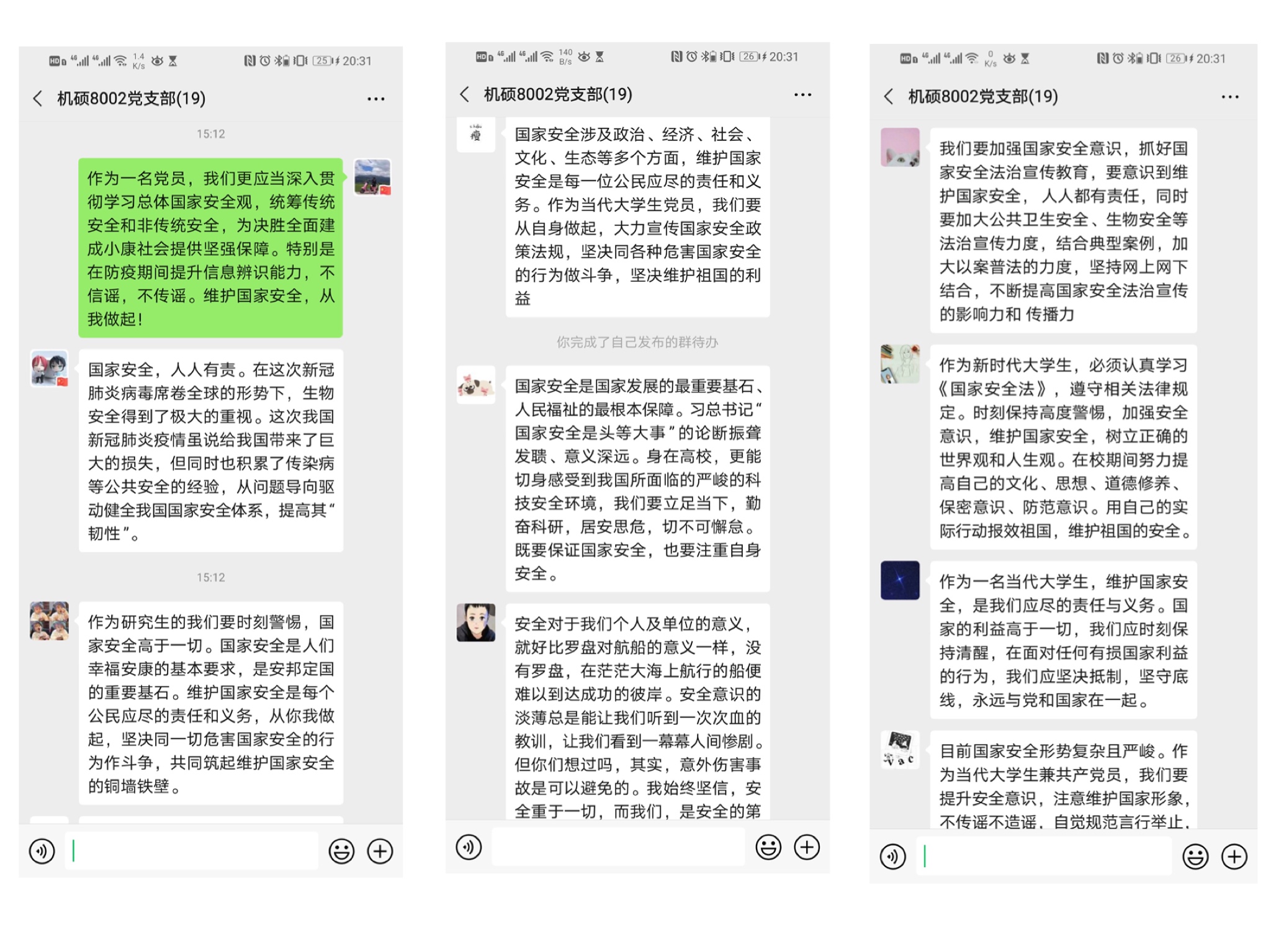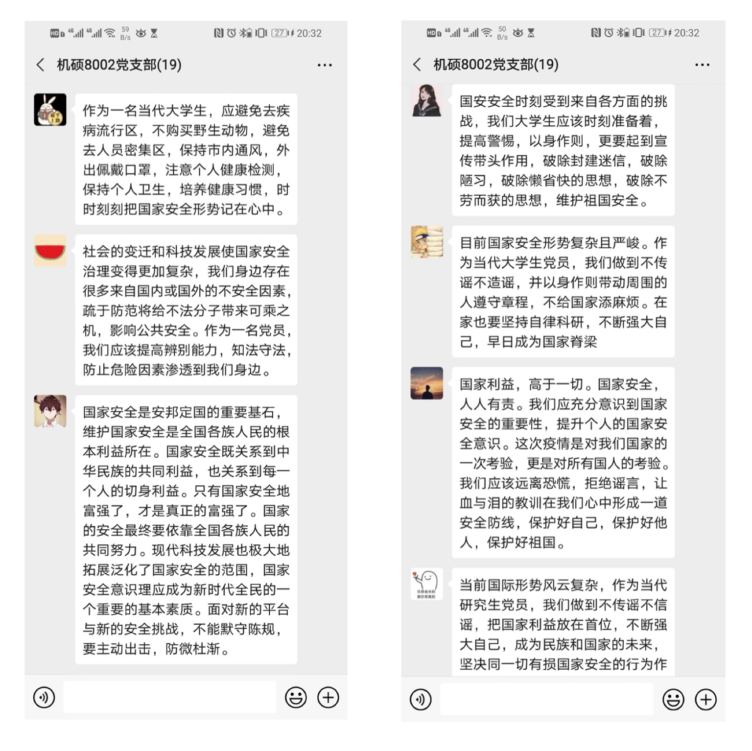 2020年4月15日下午14:00,西安交通大学koko体育·(中国)官网硕8002班党支部通过腾讯会议及微信群开展了主题为“同上一堂国家安全教育课”的线上党组织生活会,会议由党支部书记雷子豪主持。